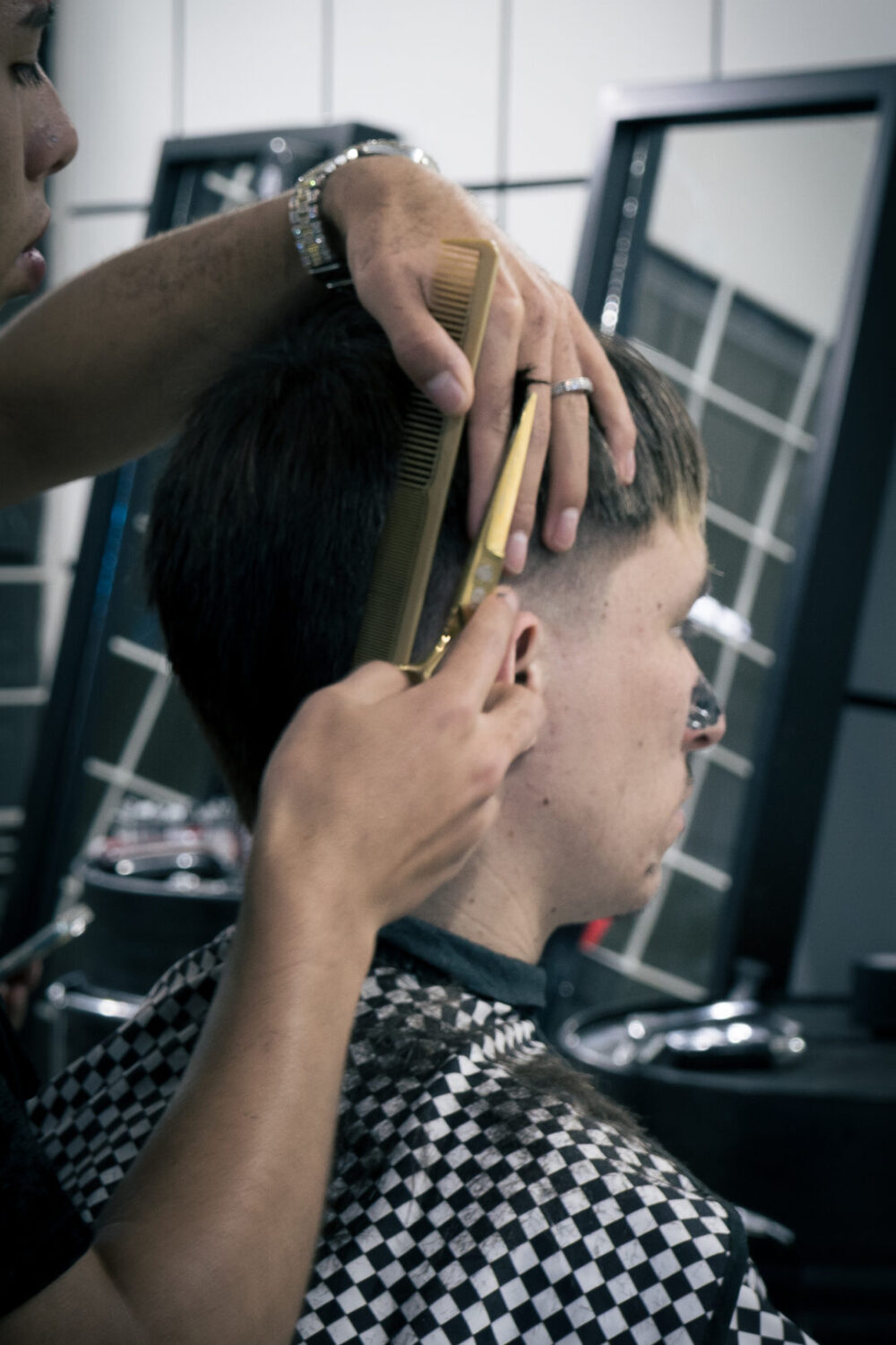 Barbero especialista en cortes de precisión y detalle acompañado del visagismo, procedimiento de ondulados y servicio al cliente.